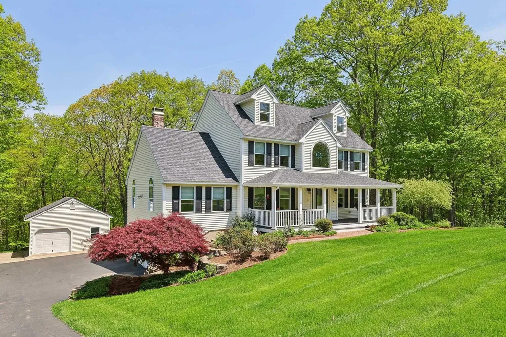 When you visit this property, you won't want to leave! Such a peaceful place to unwind from the everyday hustle and bustle! This 4 bedroom, 2.5 bath colonial sits on over 4 acres abutting CONSERVATION land. Front entry leads to the eat in kitchen with granite counters, tile backsplash and center island. There is a large dining room with hardwood and a bright great room with wood burning fireplace. First floor office or living room and an updated half bath/laundry area. Walk onto the incredible deck and unwind in the sunroom that offers a tranquil place to relax and listen to the wildlife. Second level the the hardwood continues in the primary bedroom with updated 3/4 bath, 2 large bedrooms and an updated full bath. BONUS is the 3rd level with the 4th bedroom and extra spaces to use as you wish. Lower level has a mudroom area, infra red sauna and finished room currently used as the owner's wellness studio. Walk out to the hot tub area under the back deck and continue to the detached 18x20 outbuilding and down the path to the firepit area and garden. LOCATION is perfect in a sought after neighborhood and within walking distance to the middle and high school. You can see how much the owners loved and cared for this special place and hope the new owners will truly appreciate all it has to offer! Showings begin on Saturday 5/17 at the Open House.